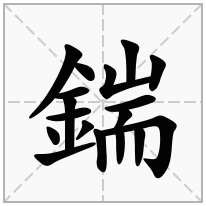 鍴字在汉语字典中的拼音是:duān,鍴是左右结构的字,鍴的部首是:釒部,共有17画。