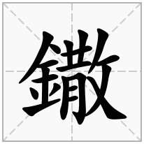 2、鏾字的总笔画为:20画。部首是:釒部,部首笔画:8划,部首外笔画:12画。