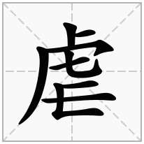 (会意。小篆字形。从虍( hǔ 指虎头),爪人。即虎足反爪伤人。隶变后省略“人”字。本义:凶恶,残暴)