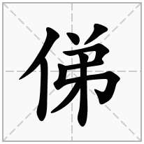 (“弟”的本字,义为容貌。弟弟面影,有似其兄,故从弟从人。凡彼此相似,皆用“俤”或“俤影”) 同“弟” ——用于人名