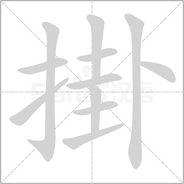 2、掛字的总笔画为:11画。部首是:扌部,部首笔画:3划,部首外笔画:8画。