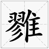 2、雡字的部首是隹,雡字的结构为:左右结构,雡字笔划顺序是:横折、点、提、横折、点、提、撇、点、撇、撇、撇、撇、竖、点、横、横、横、竖、横。