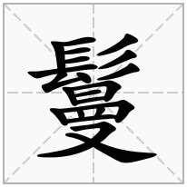 鬘字的笔顺是:横、竖、横、横、横、撇折、点、撇、撇、撇、竖、横折、横、横、竖、横折、竖、竖、横、横撇/横钩、捺。